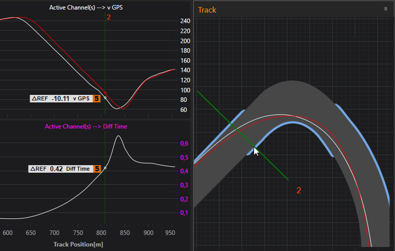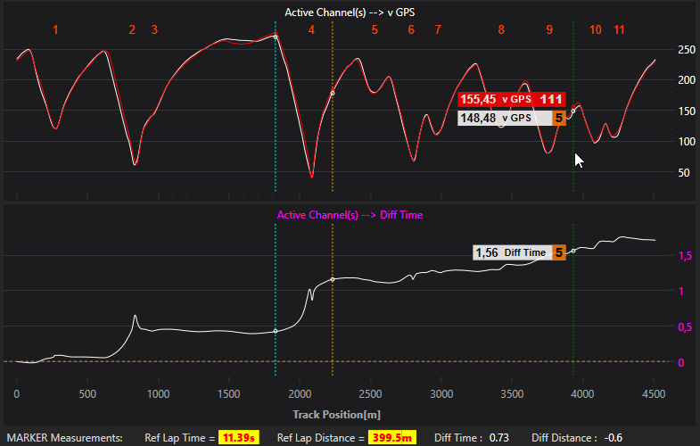 Sind zwei Runden gewählt, ist im Plot "Time Diff" der Verlauf des Zeitunterschieds direkt ersichtlich.