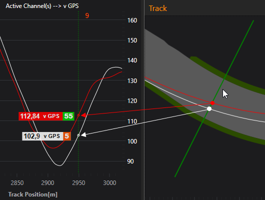 Damit ist immer klar, zu welchem Ort auf der Strecke die Daten beim Cursor zugeordnet sind.